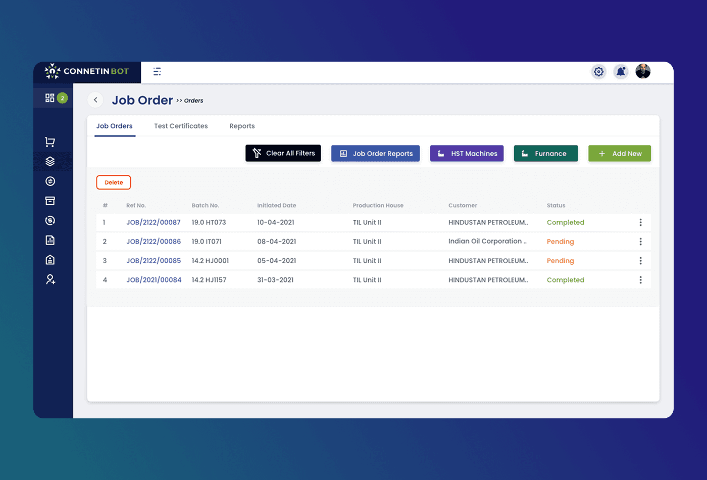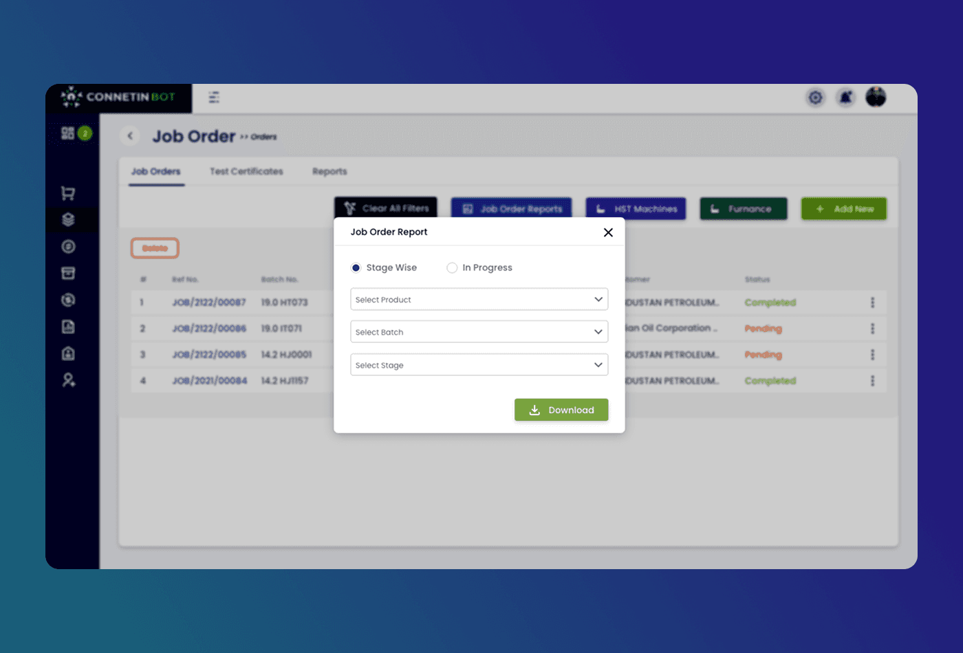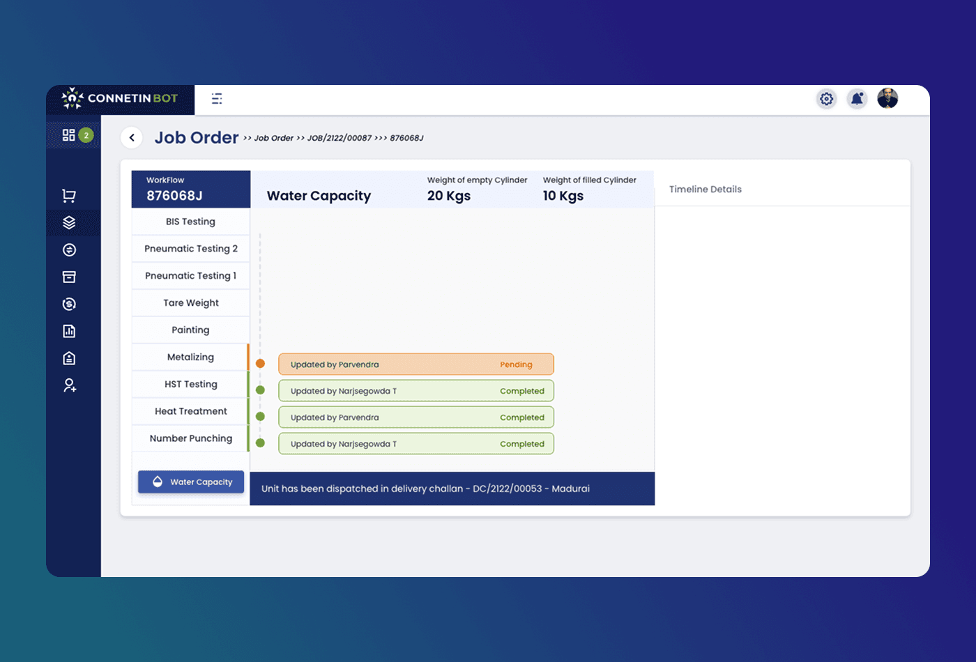 ConnetinBot is an ERP web application designed for cylinder manufacturing units to monitor, manage, and validate production workflows through IoT-integrated systems. The platform connects manufacturing data from physical devices into a centralized digital interface, enabling real-time visibility, traceability, and compliance with industry quality standards.