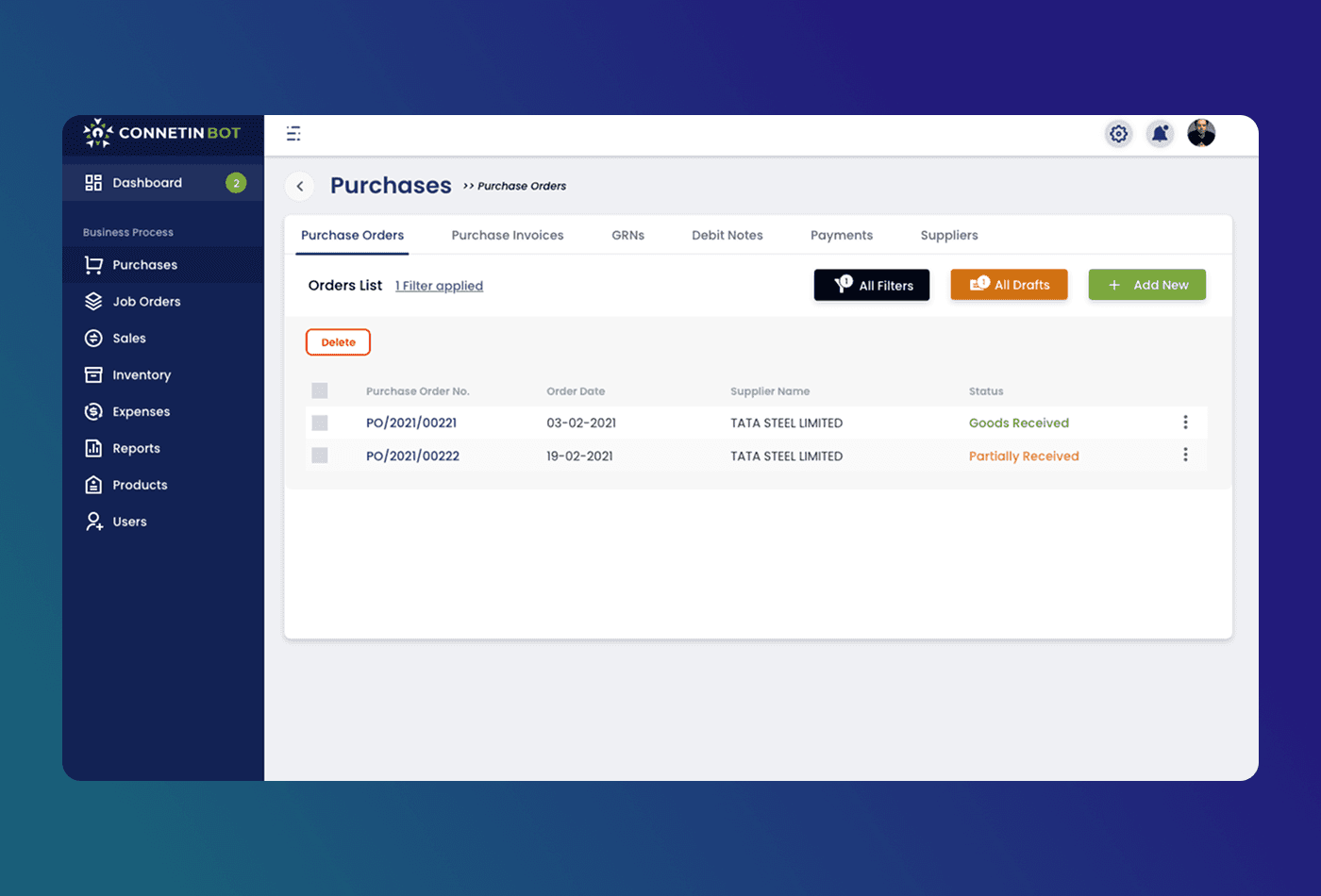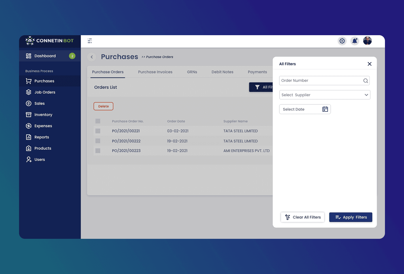 The redesigned ConnetinBot experience introduced streamlined workflows, clearer information hierarchy, and standardized UI components to simplify daily business operations. By translating complex ERP and IoT data into intuitive dashboards and task-driven screens, the platform became easier to use, scalable across industries, and better aligned with evolving business needs.